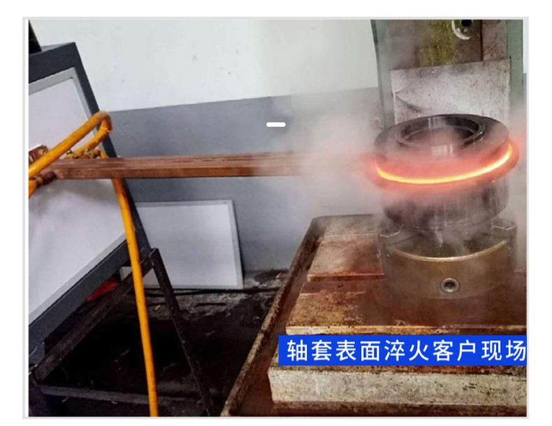 中高頻感應淬火設備 ,可用于軸套熱處理淬火。淬火層深1.5~3mm,淬火硬度均勻。設備功率選擇120~200kw,淬火工藝旋轉加熱,噴液冷卻。
