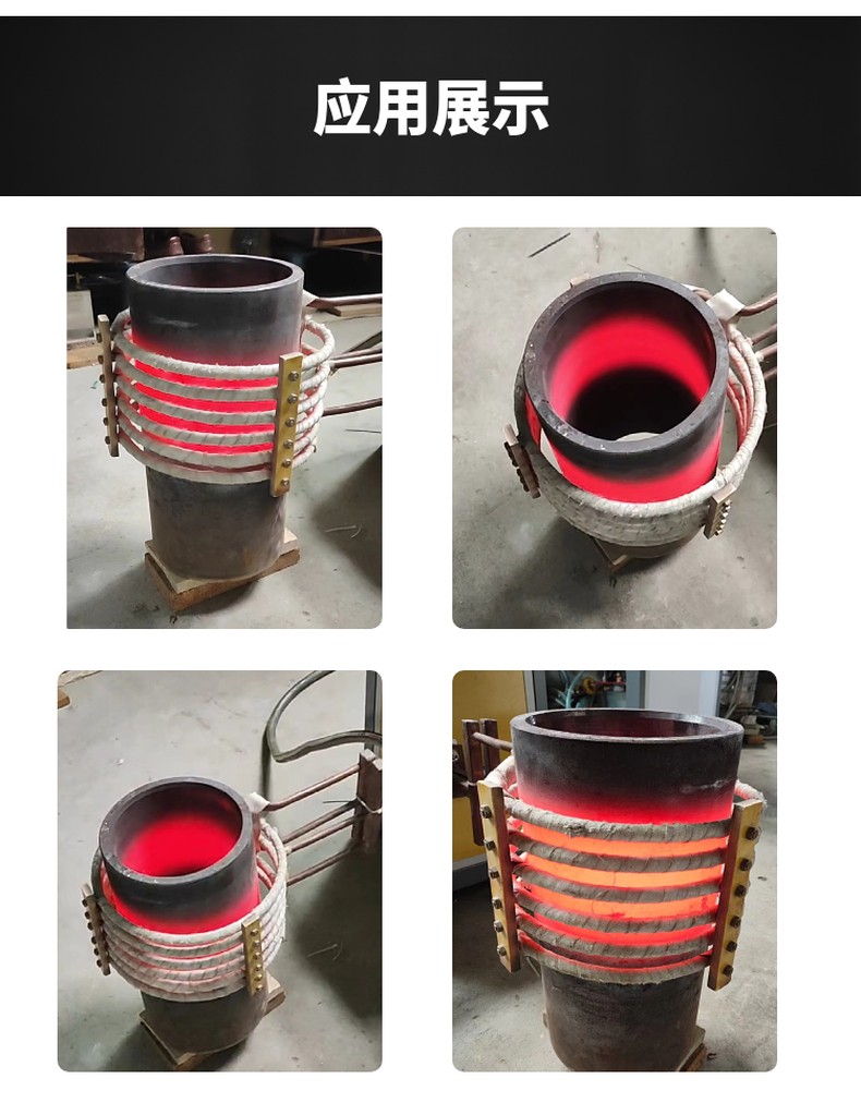 采用的是感應加熱電源加上根據鋼管尺寸制作的感應器現在,把鋼管置于感應線圈中,進行加熱的工藝。例如直徑60mm、壁厚8mm鋼管加熱處理,我們選擇一臺120kw或者160kw感應加熱電源,對其進行透熱處理。